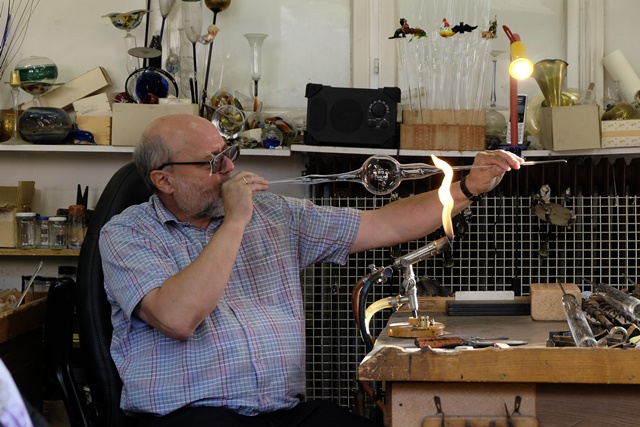 Herr Arthur Ostermeier am 07.Sept.2017 in der Glasbläserei von Detlef Greiner-Perth